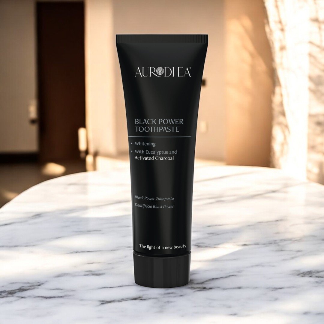 Le dentifrice Black Power Aurodhea élimine les bactéries, éclaircit les taches dentaires et exerce une action blanchissante grâce à sa formule à base de charbon actif. Il contient du pyrophosphate de sodium, une substance capable d’éliminer le magnésium et le calcium de la salive, évitant ainsi leur dépôt sur les dents et la formation de tartre qui en découle. Sa formule naturelle à base de plantes, sans graisses animales ni alcool, rétablit le pH physiologique et reminéralise les dents. Actif sans être agressif pour les dents et les gencives, il est non abrasif. Il contient de l’huile essentielle de menthe poivrée, qui assure un goût agréable et une sensation de fraîcheur durable, et de l’huile essentielle d’eucalyptus, aux propriétés anti-inflammatoires et antiseptiques. L’effet blanchissant est perceptible dès les premiers lavages.